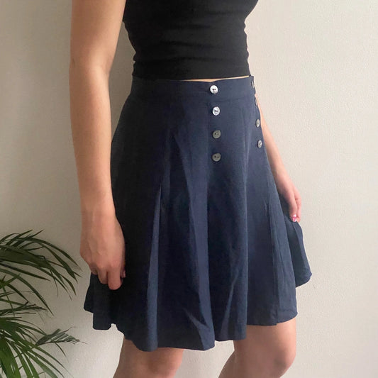 Any Time Checked Mini Skirt - 28W UK 8 Navy Silk