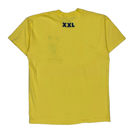 Made In USA Single Stitch 7 Threads Royal T-Shirt - Large Yellow Cotton