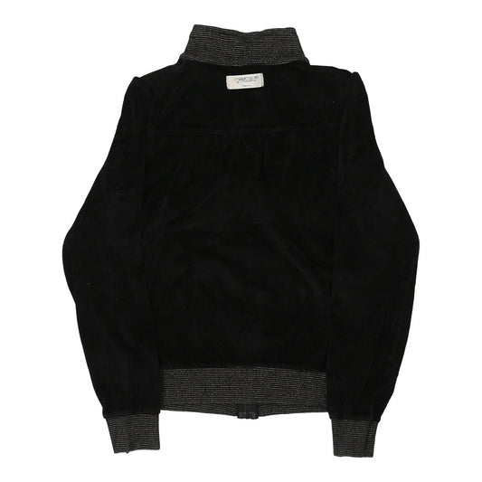 Benetton Velour Track Jacket - Medium Black Cotton Blend
