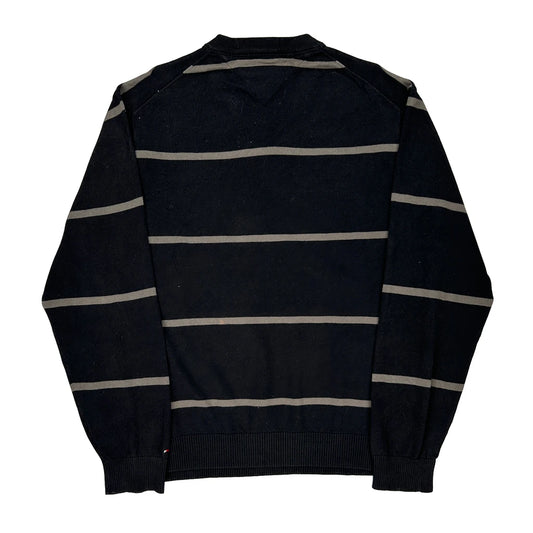 Tommy Hilfiger Striped Jumper - Large Black Cotton