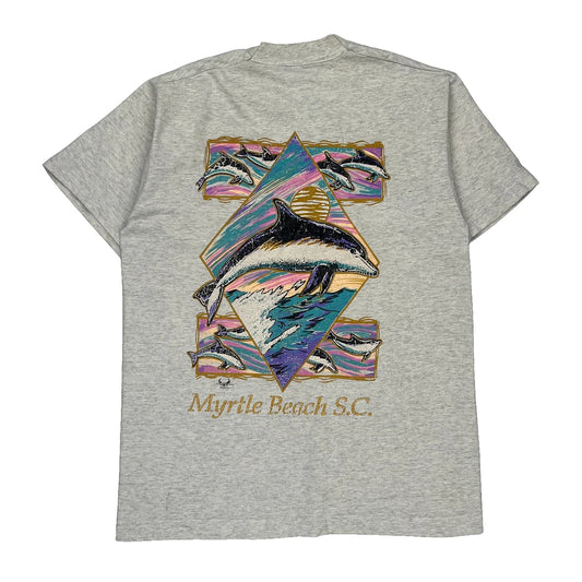 Single Stitch Fruit Of The Loom Graphic T-Shirt - Medium Grey Cotton Blend