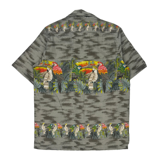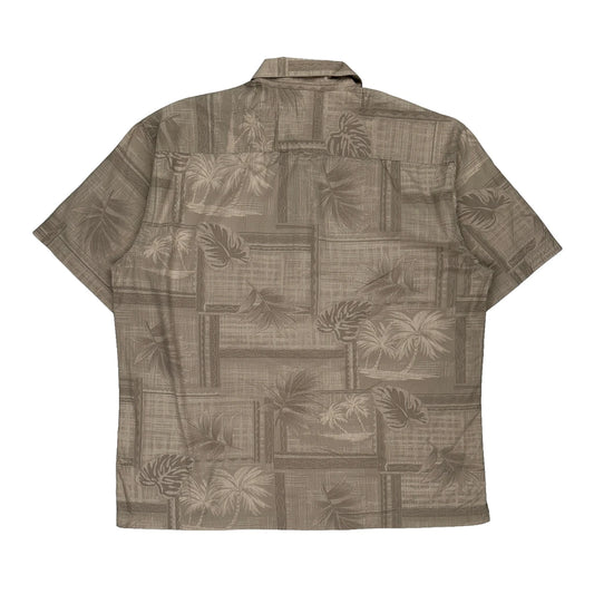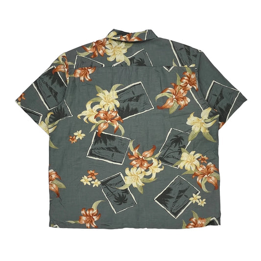 Caribbean Graphic Hawaiian Shirt - XL Grey Silk Blend