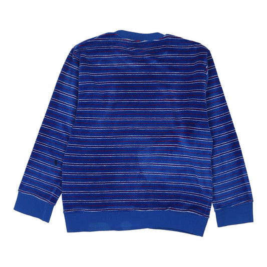 1970's Unbranded Striped Velour Sweatshirt - Medium Blue Polyester Blend