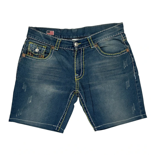 True Religion Contrast Stitch Denim Shorts - 36W 9L Blue Denim