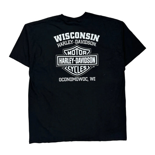 Oconomowoc, Wi Harley Davidson Graphic T-Shirt - 2XL Black Cotton