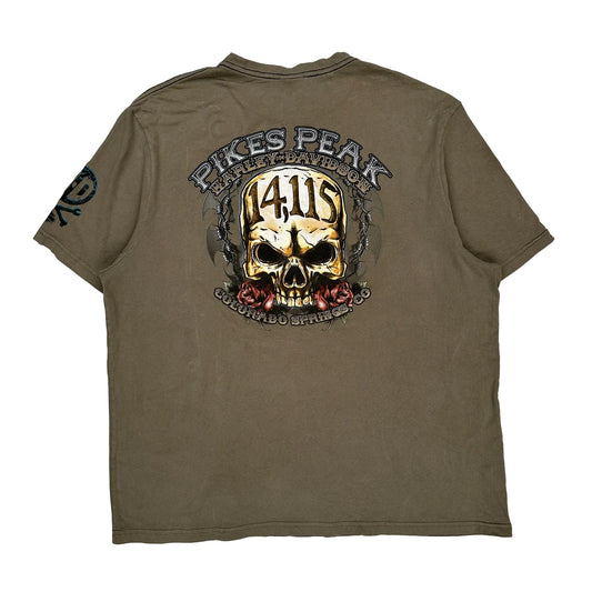 Harley Davidson Graphic T-Shirt - 2XL Khaki Cotton