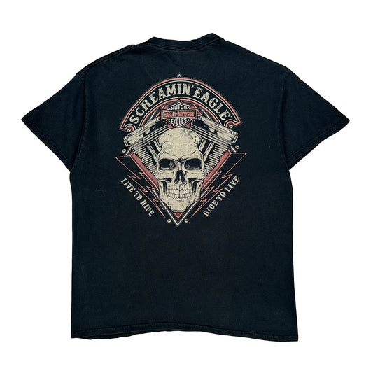 Harley Davidson Graphic T-Shirt - Large Black Cotton
