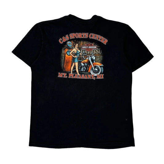 C&S Sports Center Mt. Pleasant, Mi Harley Davidson Graphic T-Shirt - Large Black Cotton