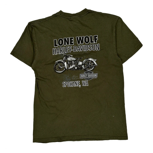 Harley Davidson Graphic T-Shirt - Medium Green Cotton
