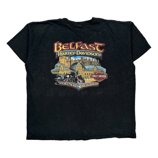 Belfast Northern Ireland Harley Davidson Graphic T-Shirt - XL Black Cotton