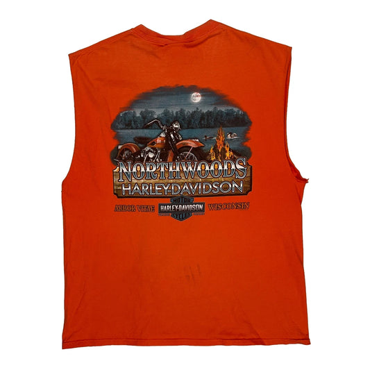 Northwoods Harley Davidson Graphic T-Shirt - XL Orange Cotton