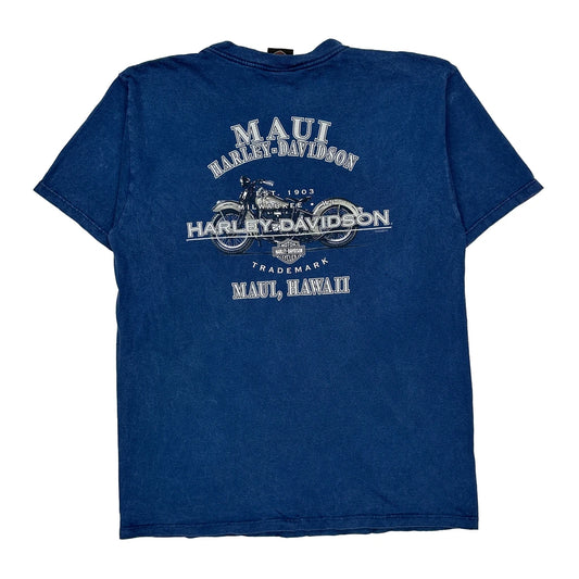 Maui, Hawaii Harley Davidson Graphic T-Shirt - Large Blue Cotton