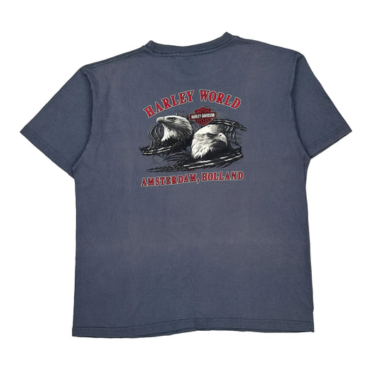 Harley World Amsterdam, Holland Harley Davidson Graphic T-Shirt - XL Grey Cotton
