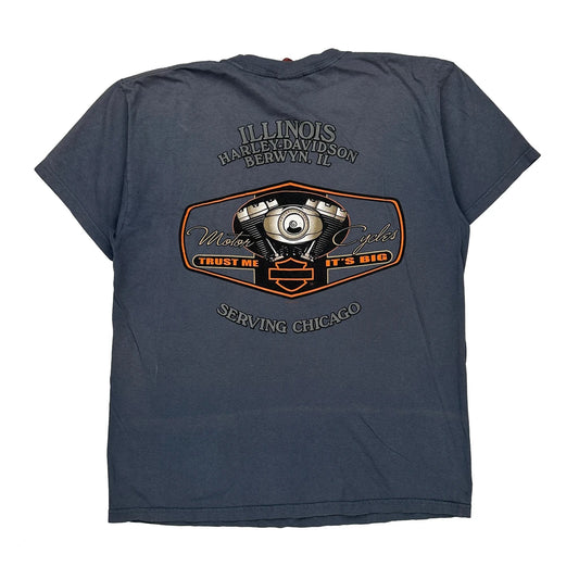 Serving Chicago Harley Davidson Graphic T-Shirt - Large Grey Cotton