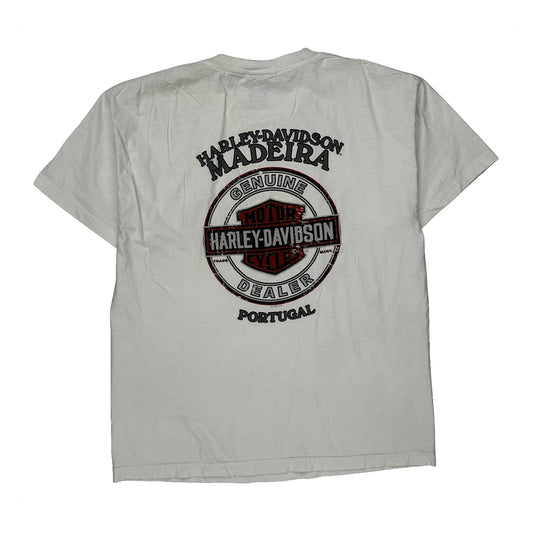 Harley Davidson Graphic T-Shirt - Large White Cotton
