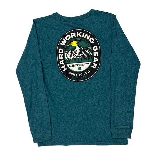 Age 14-16 Carhartt Long Sleeve T-Shirt - Large Blue Cotton