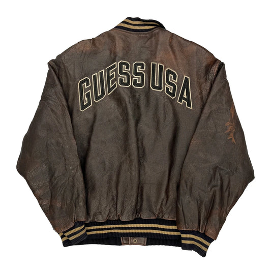 Guess Varsity Jacket - Large Brown Leather
