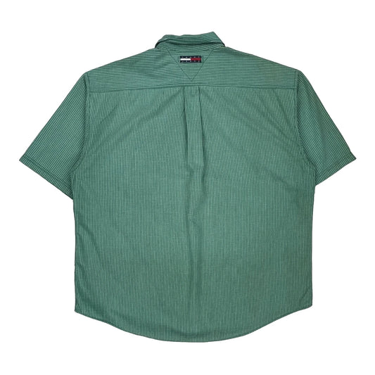 Tommy Jeans Striped Short Sleeve Shirt - Large Green Cotton