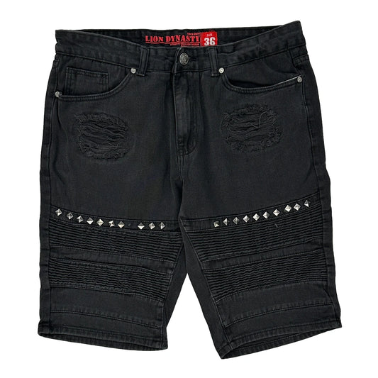 Lion Dynasty Studded Denim Shorts - 36W 12L Black Cotton