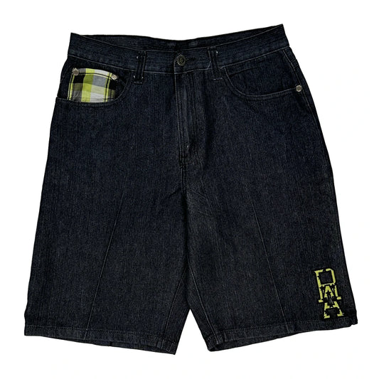 Plaid Pocket Detail Red Ape Denim Shorts - 34W 12L Dark Wash Denim