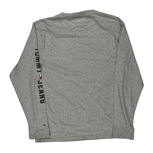 Tommy Jeans Spellout Long Sleeve T-Shirt - Medium Grey Cotton