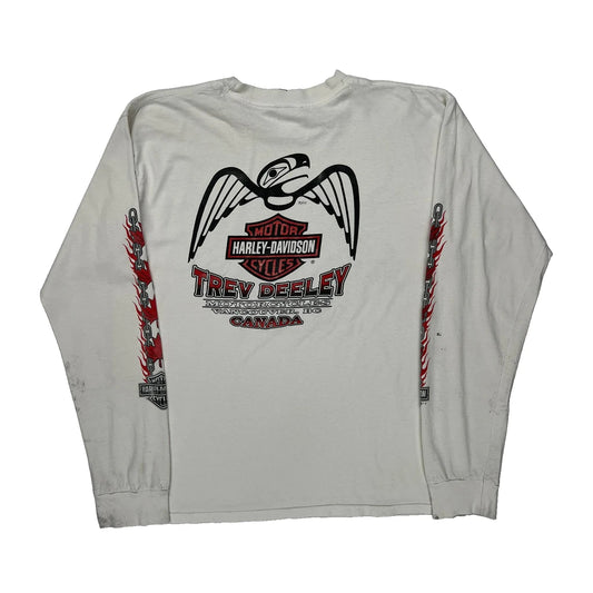 Trev Deeley Harley Davidson Graphic Long Sleeve T-Shirt - Large White Cotton