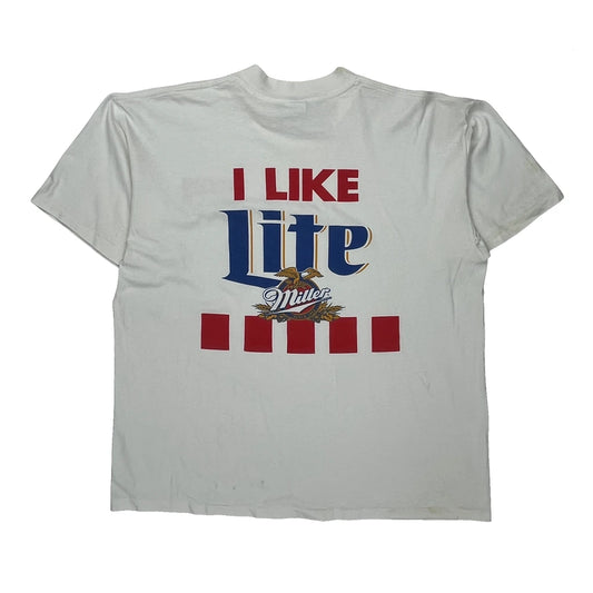 Miller Lite Graphic T-Shirt - XL White Cotton