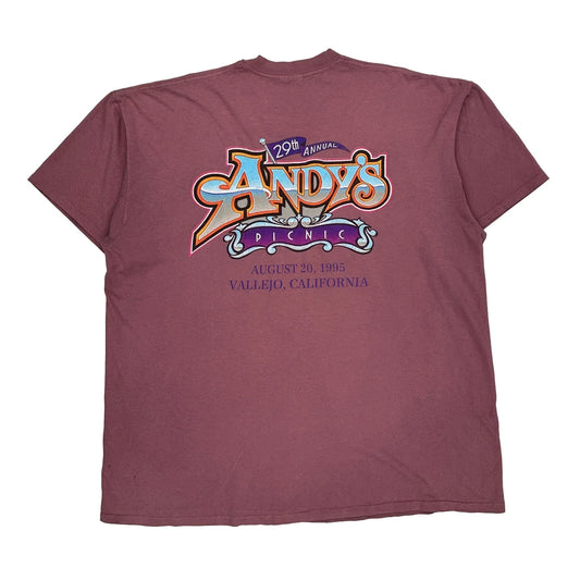 Andy'S Picnic Oneita Graphic T-Shirt - 2XL Burgundy Cotton