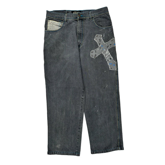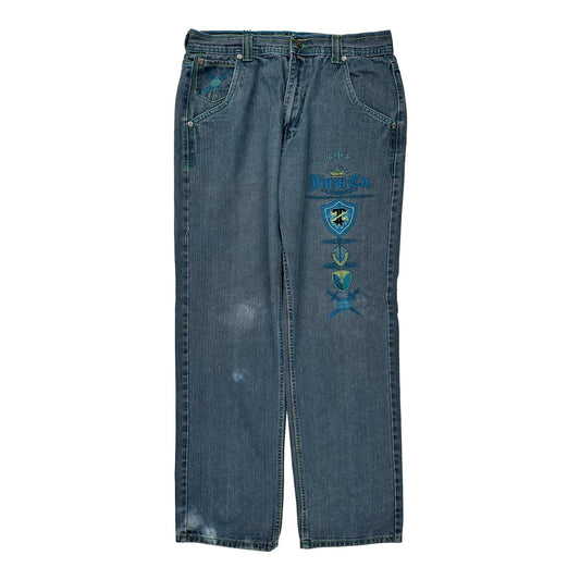 Embroidered Patches Jinzu Graphic Jeans - 33W 34L Blue Cotton