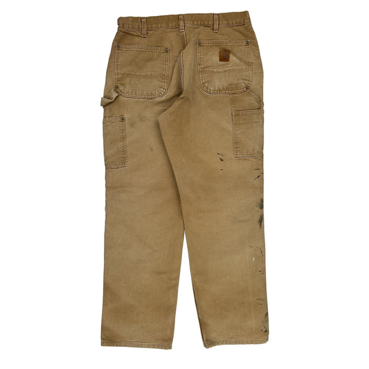 Heavily Worn Carhartt Double Knee Carpenter Trousers - 33W 30L Brown Cotton