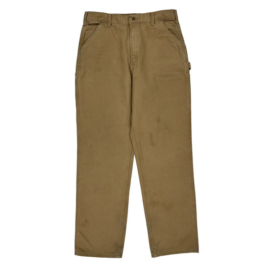 Carhartt Carpenter Trousers - 34W 28L Khaki Cotton Blend