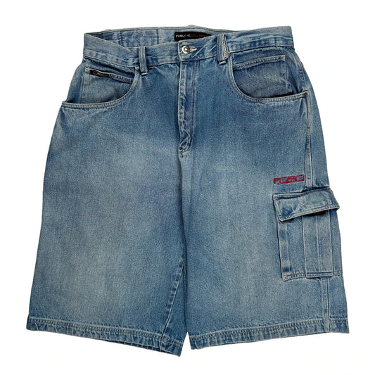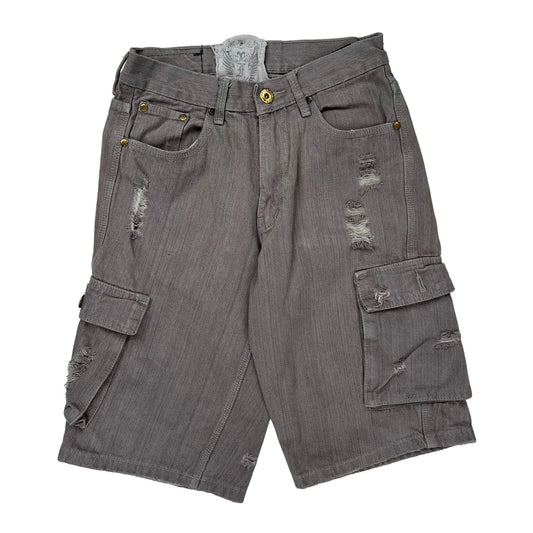 Fubu Cargo Denim Shorts - 34W 12L Grey Cotton