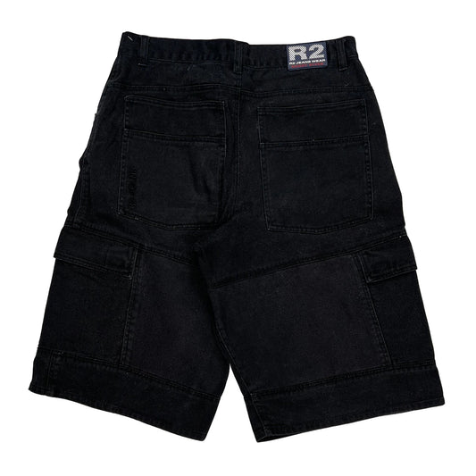 R2 Jeans Hip Hop Cargo Shorts - 32W 12L Black Cotton