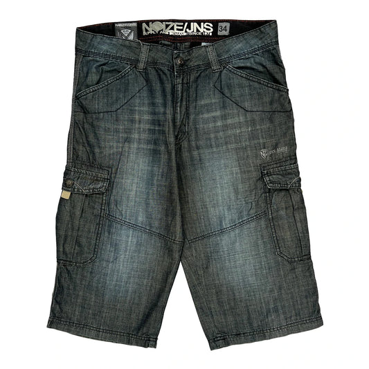 Noiz Hip Hop Cargo Shorts - 34W 13L Dark Wash Cotton