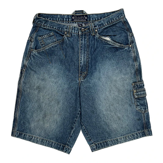 Karl Kani Hip Hop Denim Shorts - 34W 12L Blue Cotton