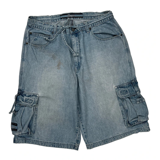 Enyce Hip Hop Cargo Shorts - 34W 12L Light Wash Denim