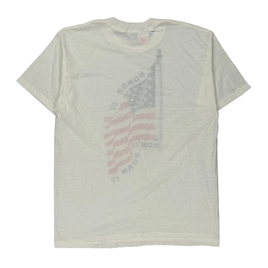 American Flag Royal Single Stitch T-Shirt - Large White Polyester Blend