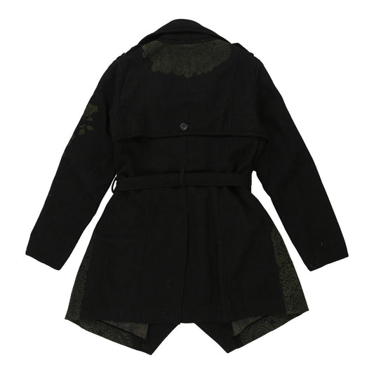 Desigual Trench Coat - Large Black Wool Blend