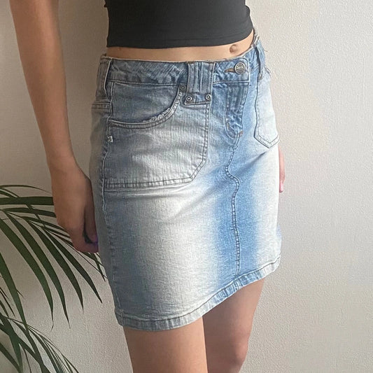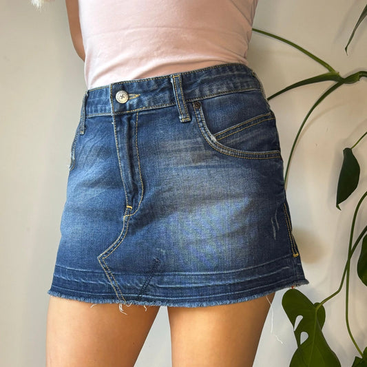 Yes Miss Mini Denim Skirt - 30W UK 10 Blue Cotton