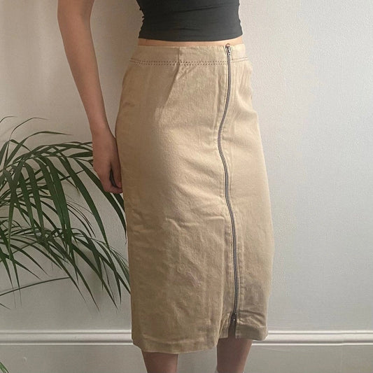 Diana Gallesi Midi Skirt - 27W UK 8 Beige Cotton Blend