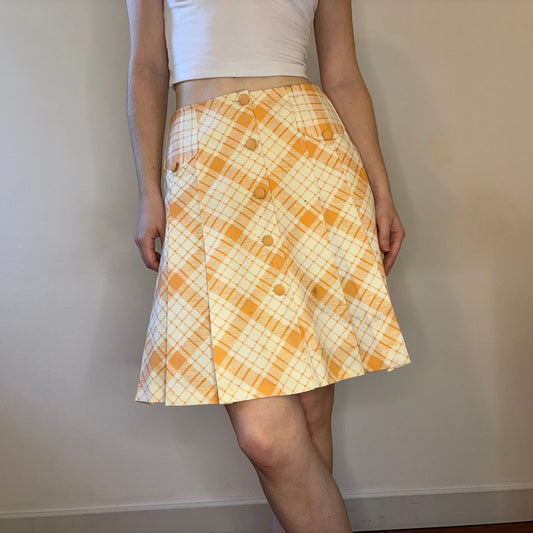 Checked Unbranded Mini Pleated Skirt - 25W UK 6 Orange Cotton Blend