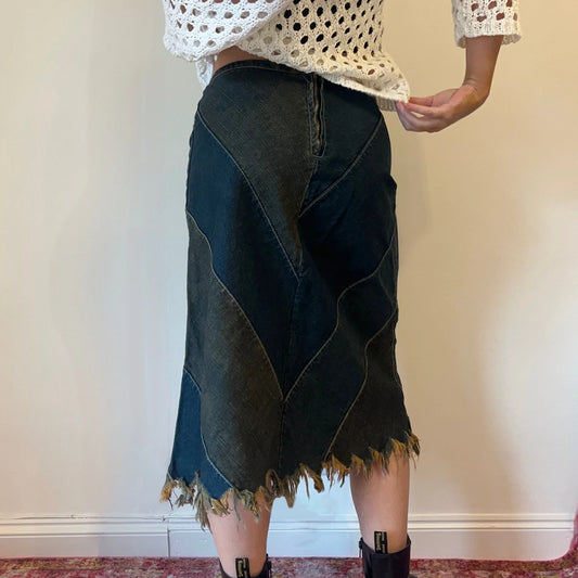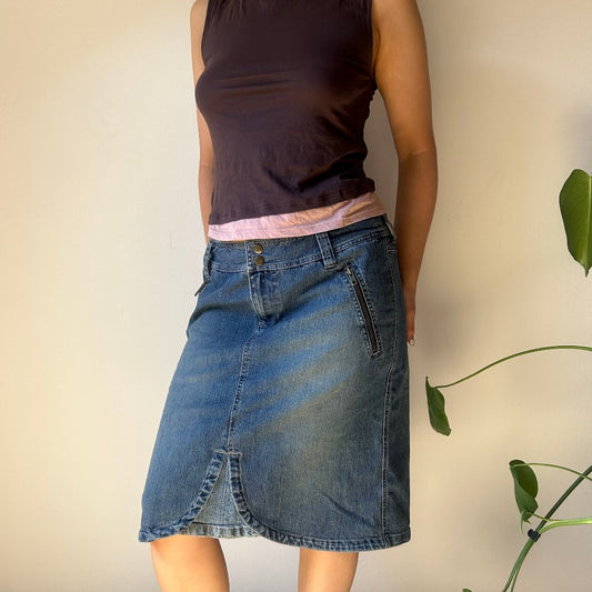 Bay Midi Denim Skirt - 32W UK 12 Blue Cotton