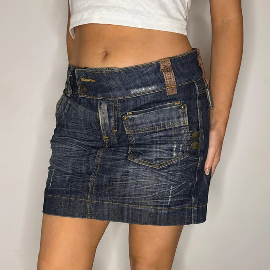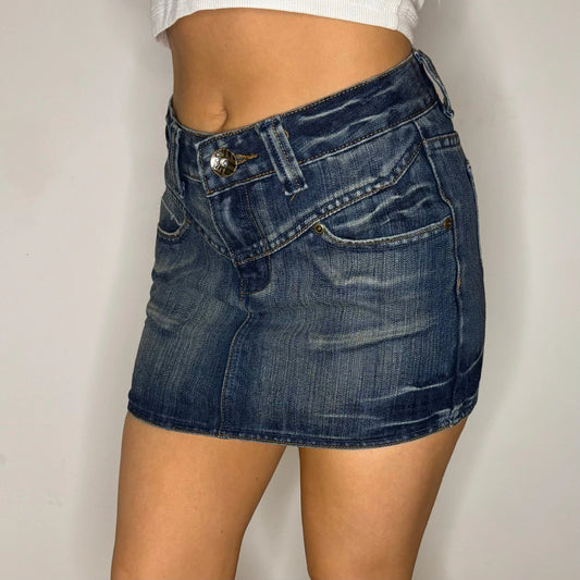 Sexy Girl Jeans Mini Denim Skirt - 28W UK 8 Dark Wash Cotton