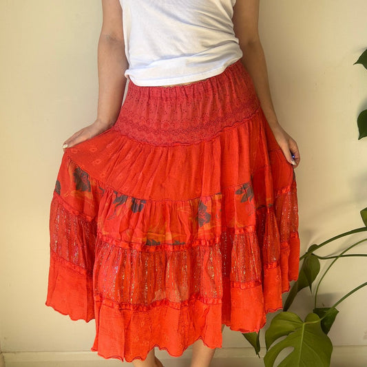 Unbranded Midi Skirt - Medium Red Cotton Blend