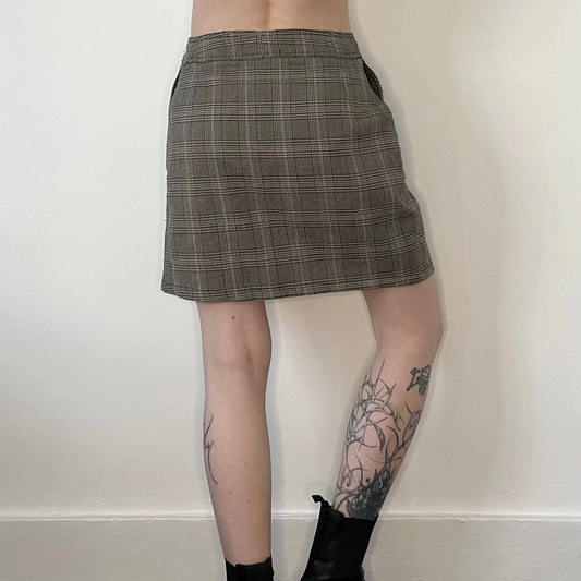 Unbranded Checked Mini Skirt - 27W UK 8 Beige Cotton Blend