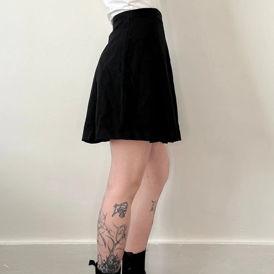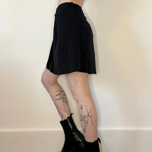 Pretty Girl Mini Pleated Skirt - 24W UK 4 Black Cotton Blend