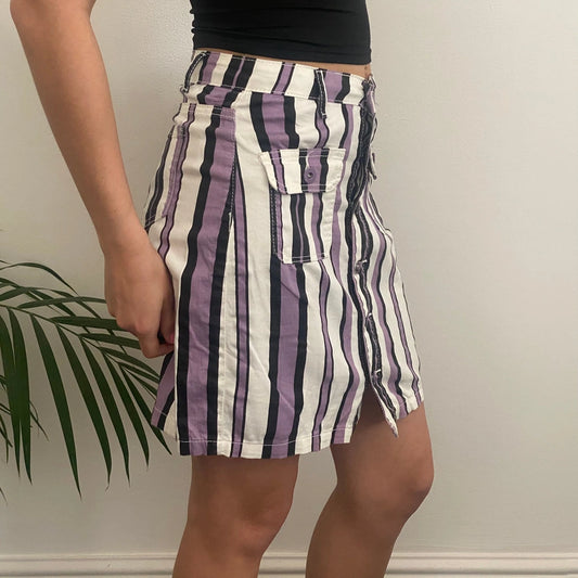 Unbranded Striped Mini Skirt - 27W UK 8 Purple Cotton
