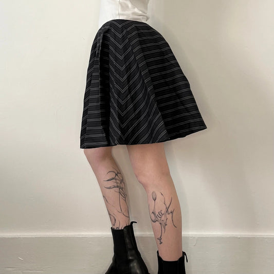 Unbranded Striped Mini Skirt - 27W UK 8 Black Cotton