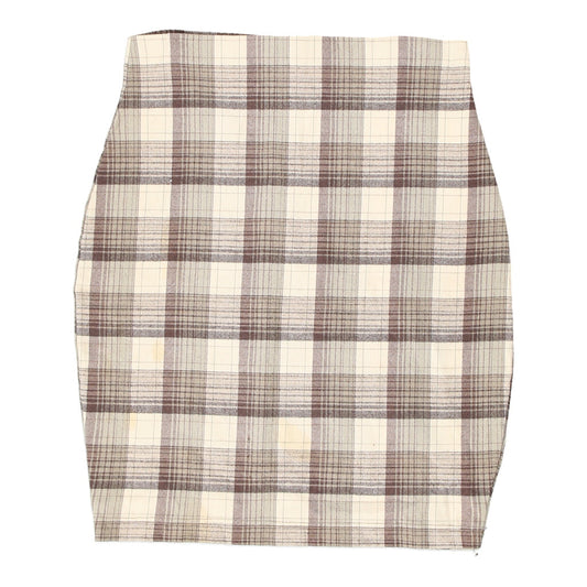Unbranded Checked Mini Skirt - 28W UK 8 Cream Cotton Blend