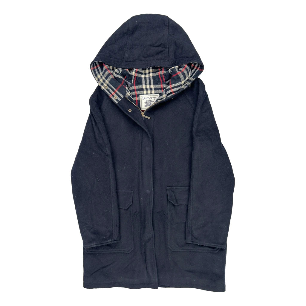 Burberry Checked Coat - Large Navy Wool